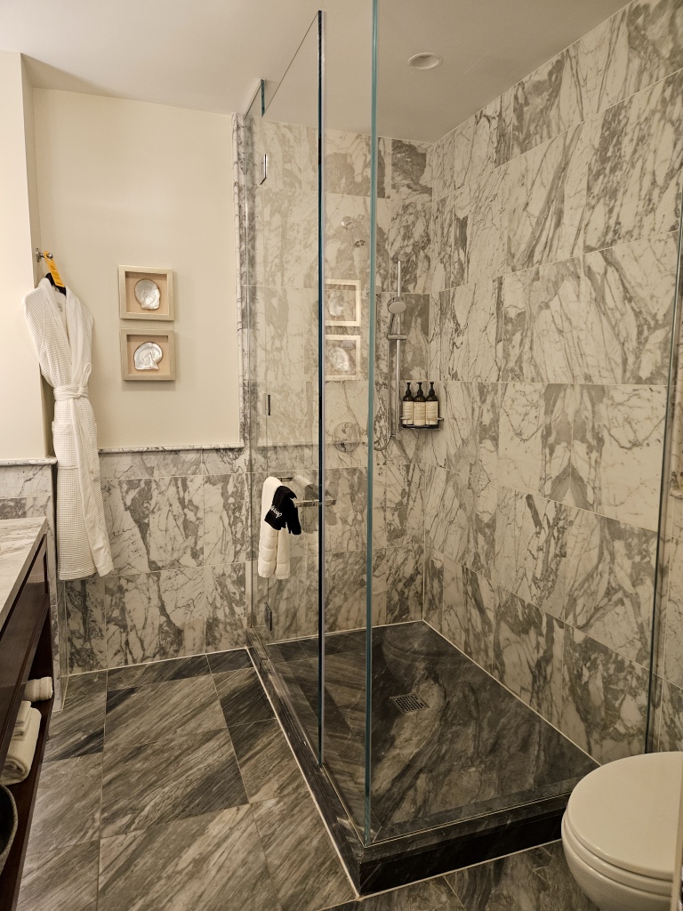The bathroom was absolutely stunning, decked in white marble. I have to say the shower was one of the most incredible I’ve ever had in a hotel room, and the we described it as a “jet wash” given the water was so powerful. It was a struggle to remove myself from it each morning!