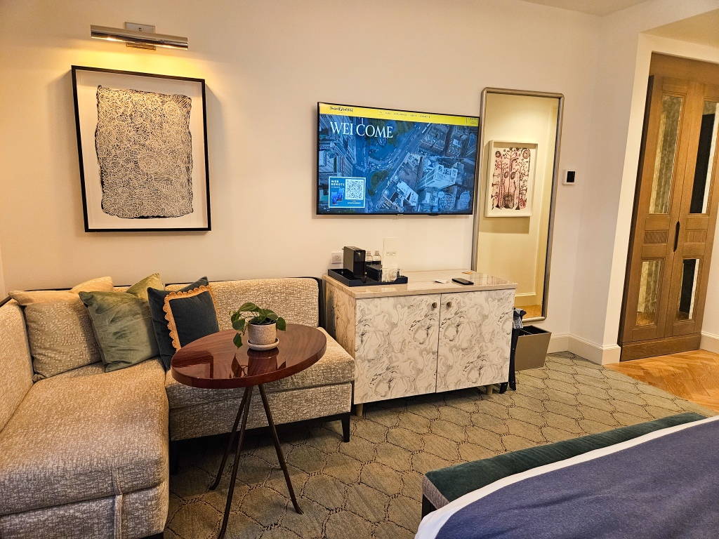 It also offers a number of bespoke services, such as a bath running service for guests staying in a suite, valet parking, and bespoke comforts in every room. I was impressed to see a menu offering free personal care items such as deodrant, shaving kits, toothbrush etc, plus options for luxury items at a price such as phone chargers, blankets, and even a Dyson hairdryer!! Unsurprisingly, I took home the free stationary which was rather lovely.